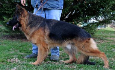 | European Import--Xoto Von Rheinhardt (10/20/2019) Hips Good DM Clear Sire--Denzy Vom Team Panoniansee Dam--Kaya Good Team Loznica This handsome boy is one of our own being born on site when his expectant mother was imported from Europe. Xoto is a handsome long coated male with deep pigment, correct conformation, substantial bone, an excellent temperament, and medium drives. He is a friendly, loving boy. We expect great things from this beautiful boy. |